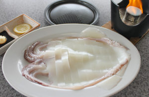 よし乃や/地イカの姿ステーキ(要予約) 2,000円(税込) お刺身用の高級白イカ丸1杯を贅沢にステーキにしました!塩レモンとマヨネーズ、2種類の味わいをお楽しみ下さい。